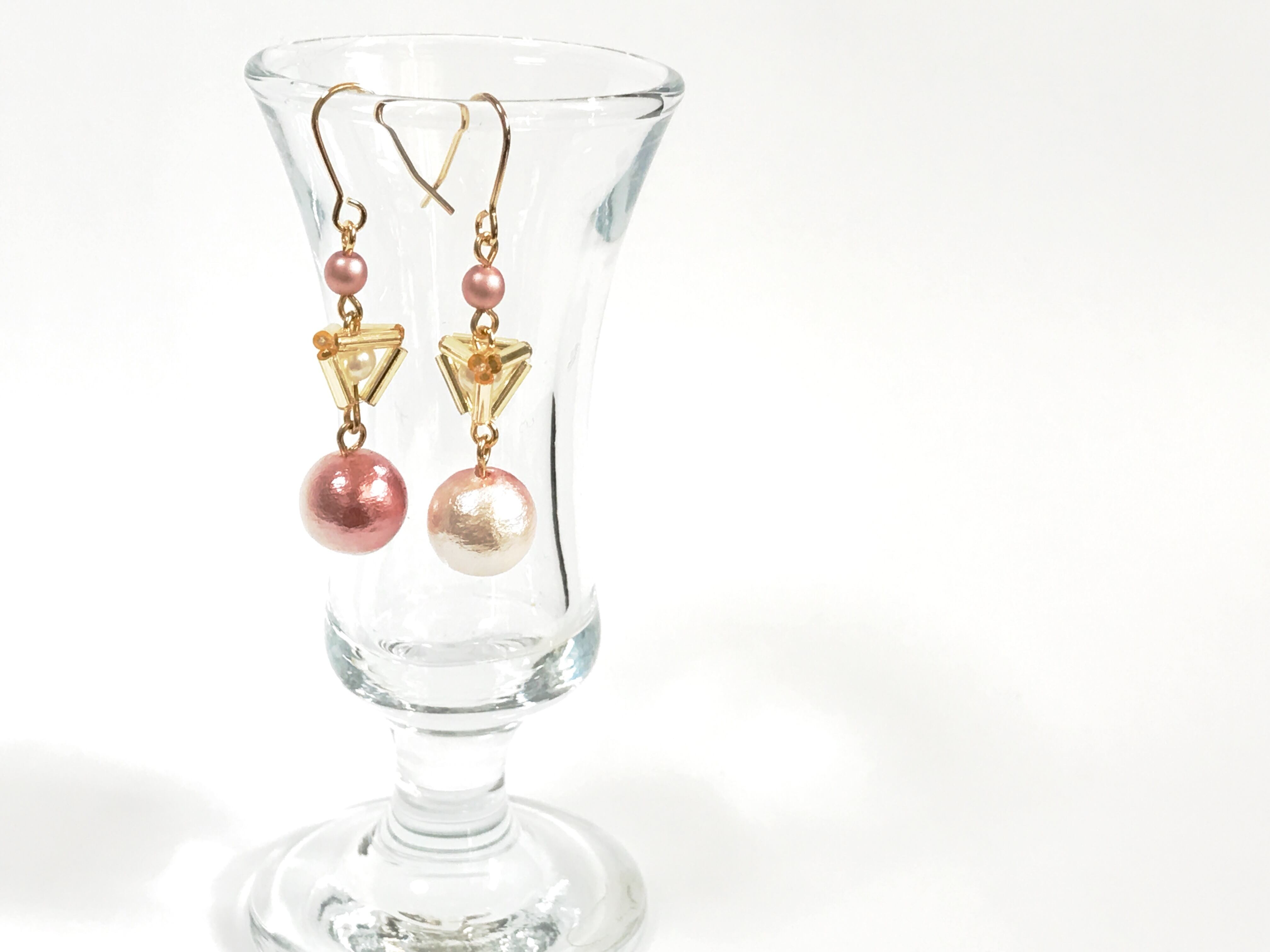 金とピンクの織りなす大人の恋色ピアス、いかがですか?