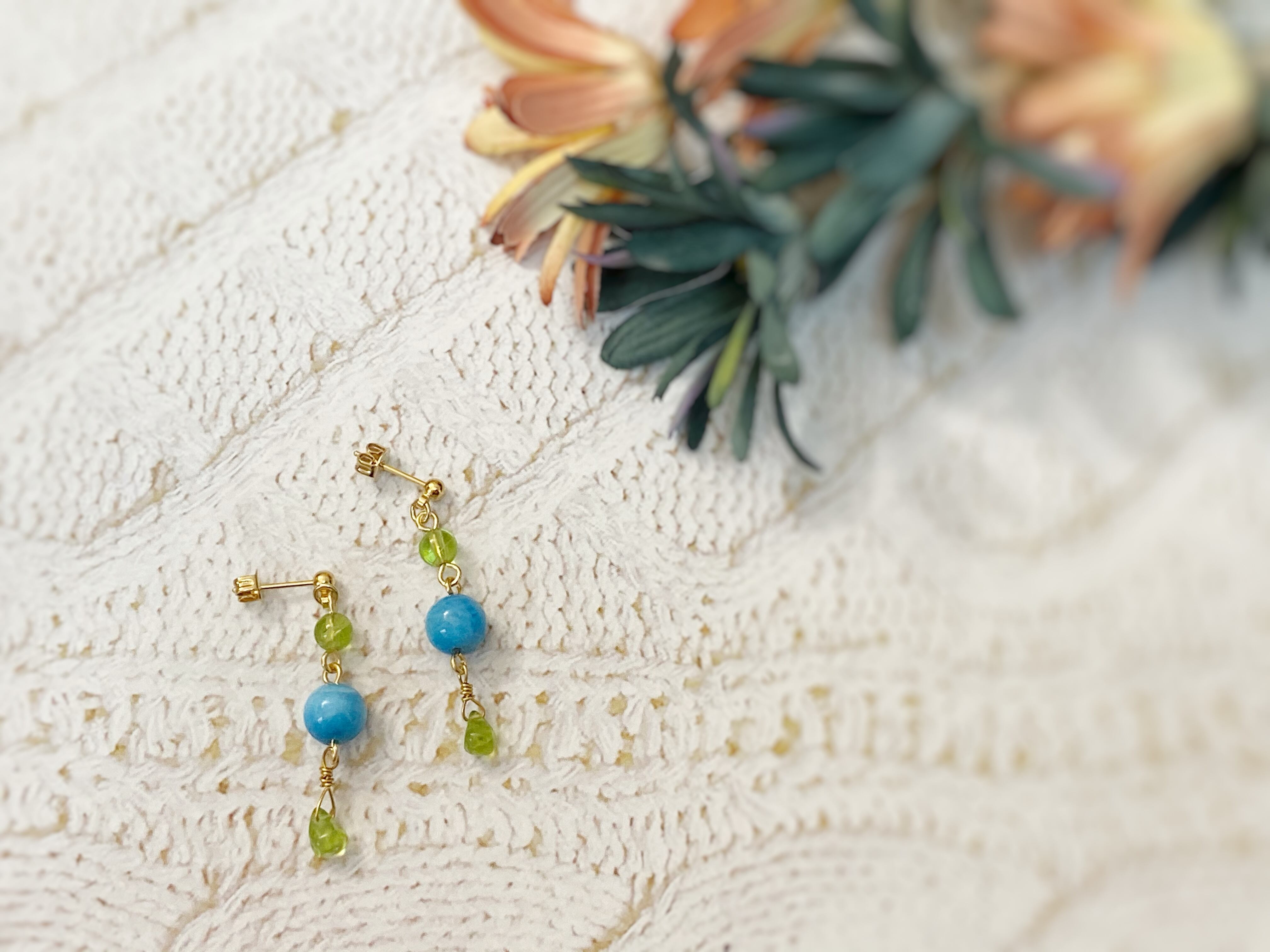 美しい緑と青の小ぶりなピアス。
