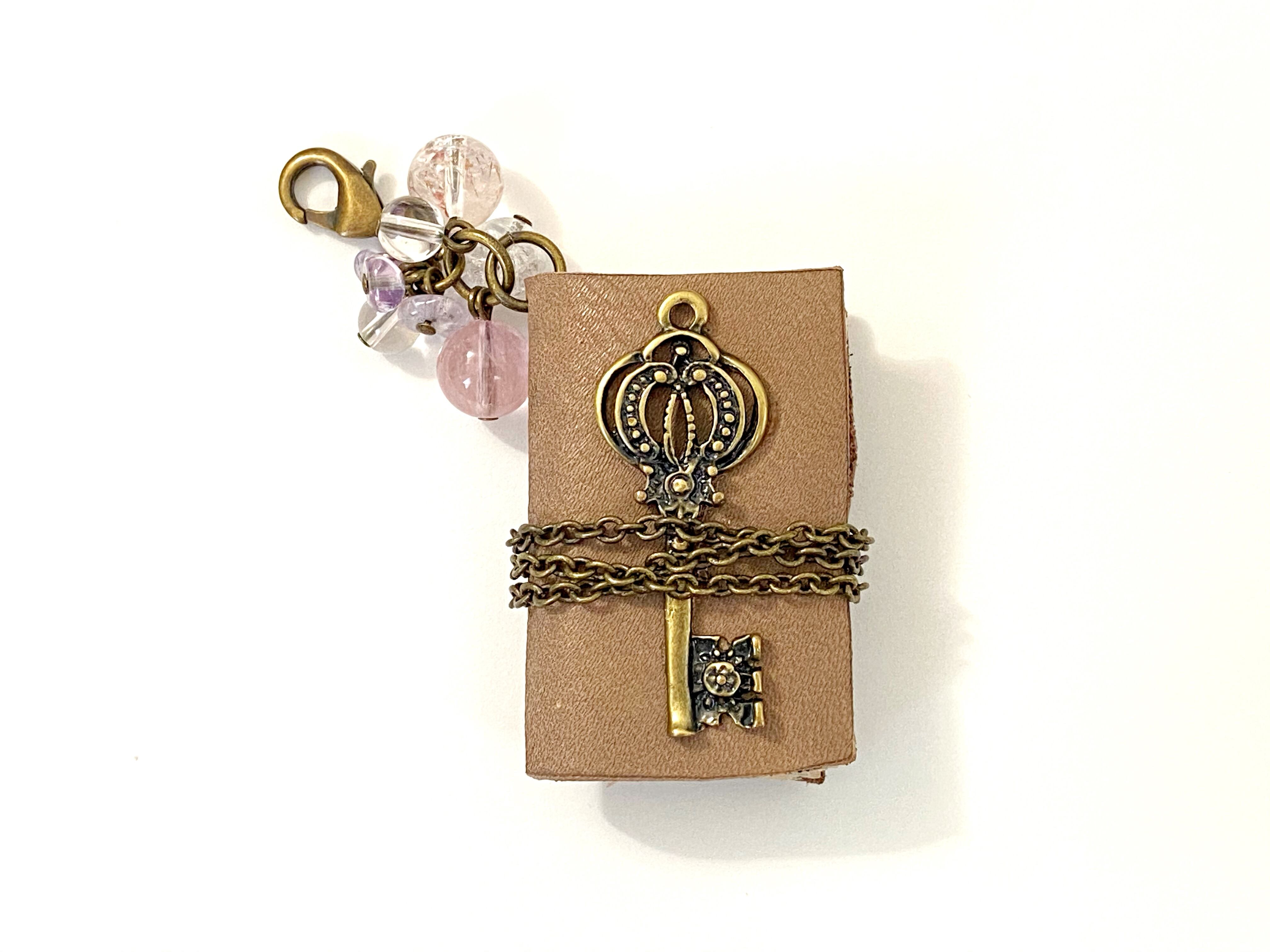 一冊一冊作り上げたミニ本に、選りすぐりの天然石を添えたチャーム。