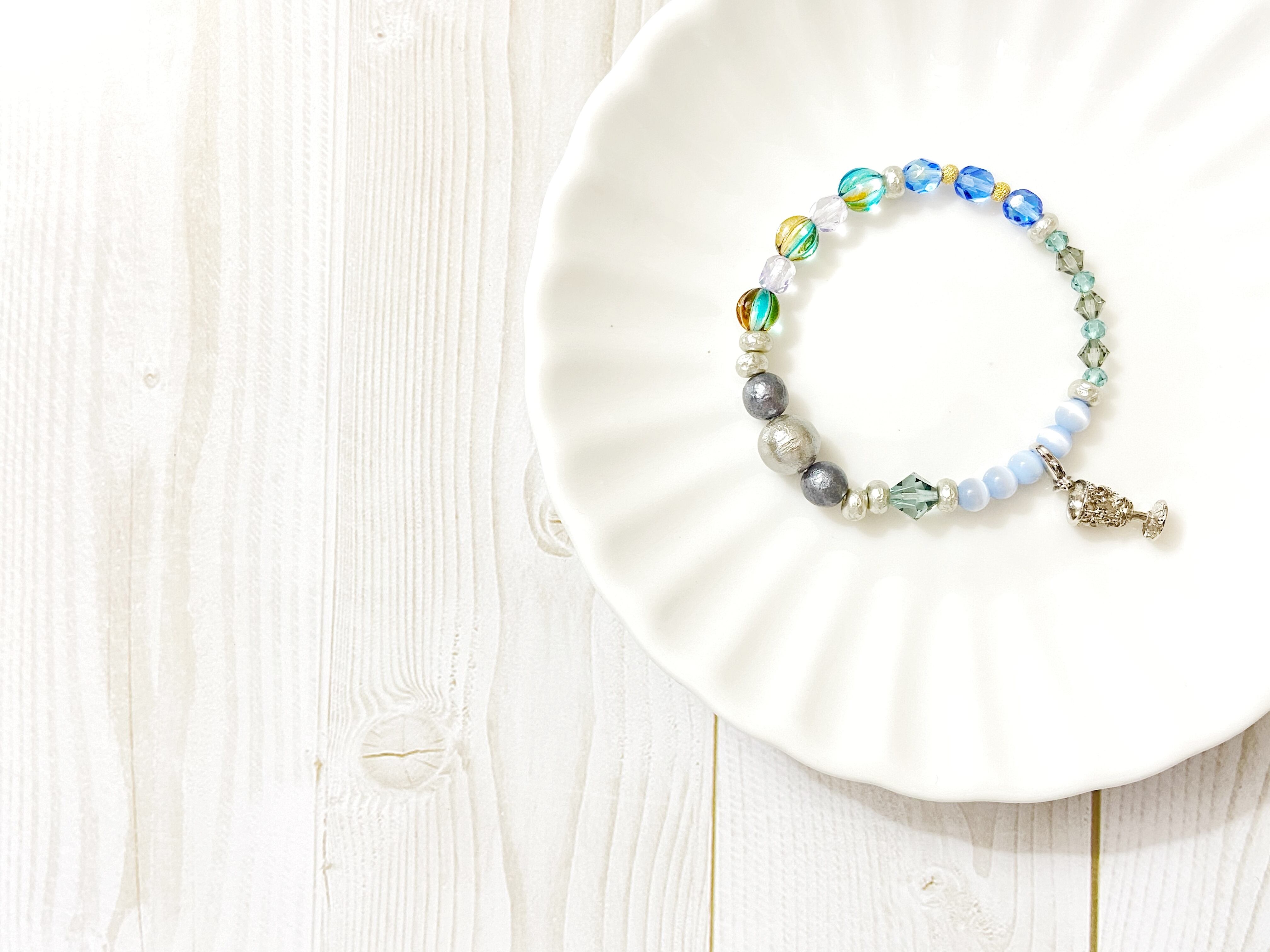 普段使いしやすい、ブルー基調のブレスレット。